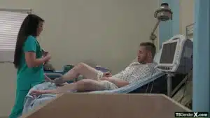 Asian tgirl nurse Kasey Kei sucks patient and is anal banged